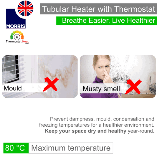 Morris 2ft Tubular Heater With Thermostat - Slimline 90 Watts - Thermostat Heat Range
