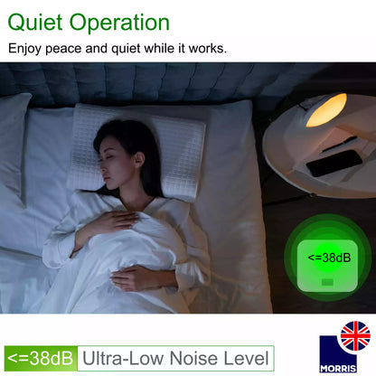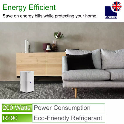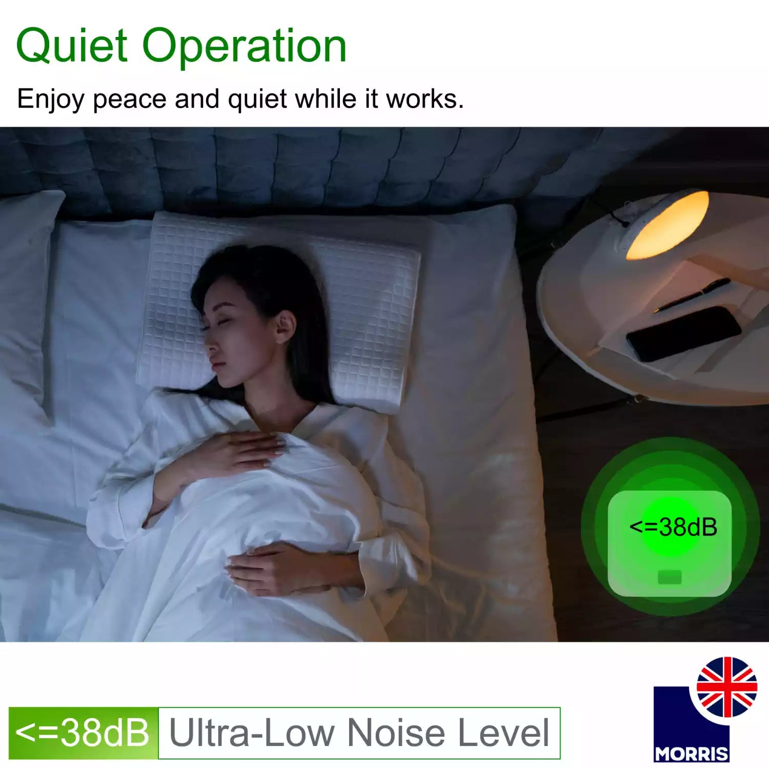 Morris low energy dehumidifier operates at just 38 decibels, providing a quiet and serene atmosphere without disturbing your daily activities.