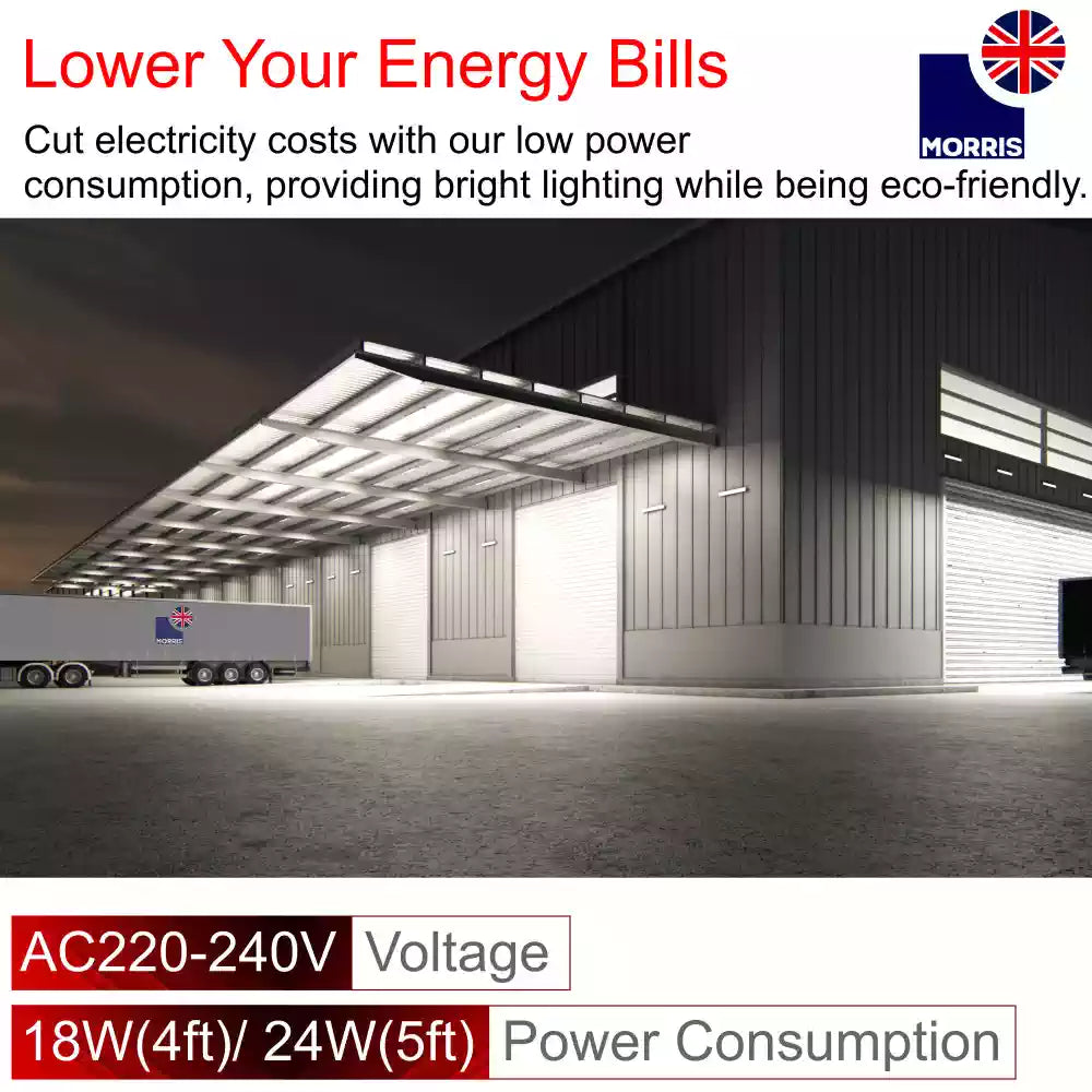 Morris outdoor led lighting batten ip65 weatherproof 5ft 24w save on energy costs