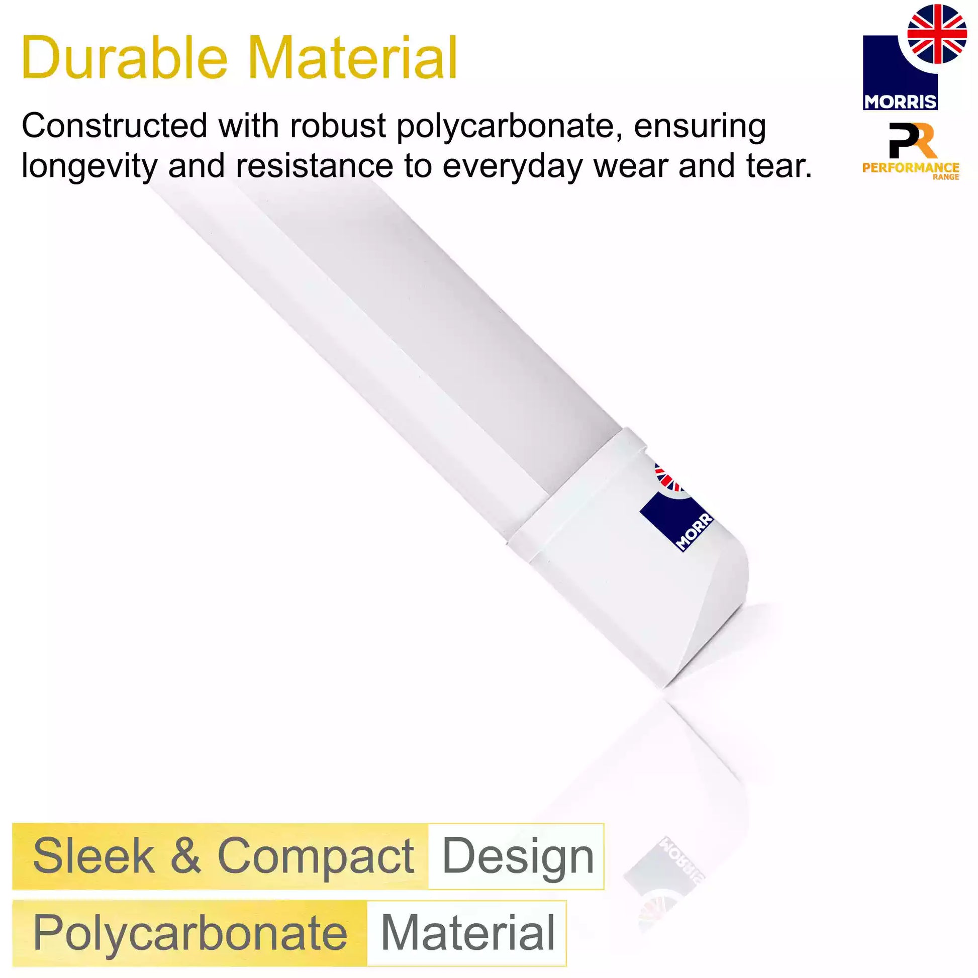 Morris LED 3ft batten light is made from polycarbonate, ensuring longevity and resistance to wear and tear for a lasting lighting solution.