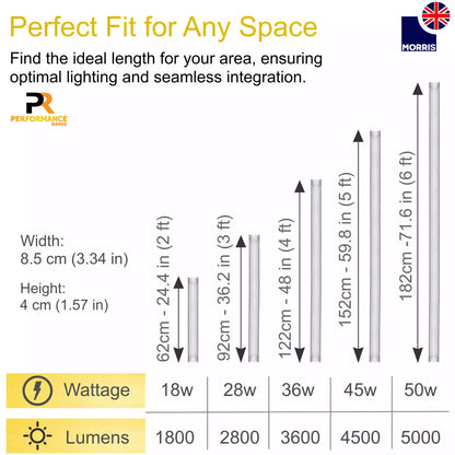 Choose Morris 3 ft LED batten light for a brighter, more efficient and more comfortable space. Order now and see the difference!
